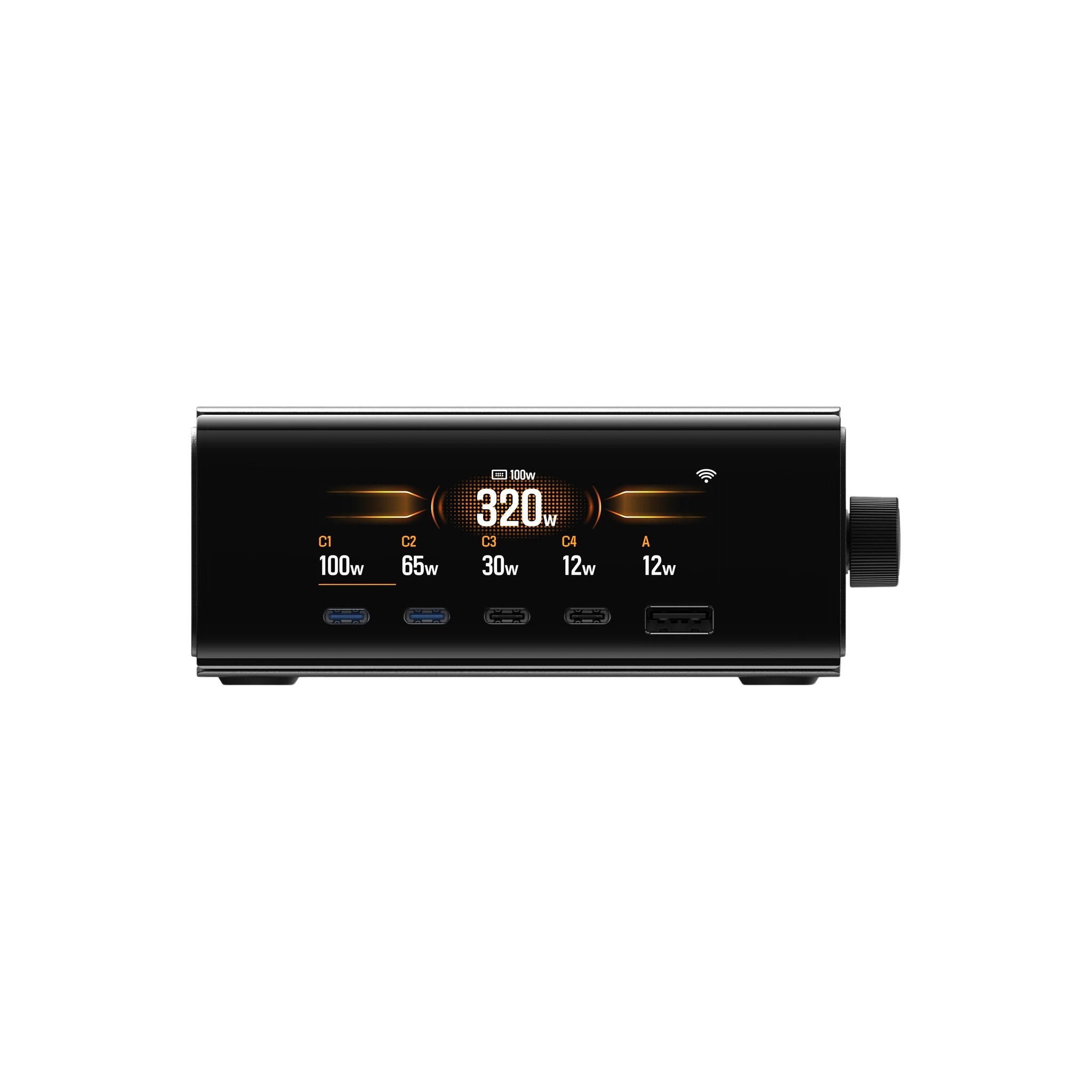 4xUSB-C, 1xUSB-A, pogo-pin.
